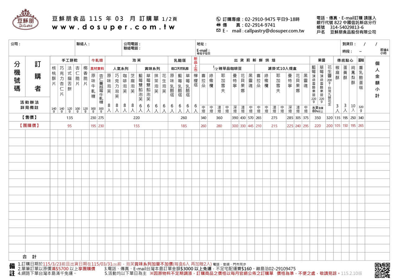 各項訂購優惠