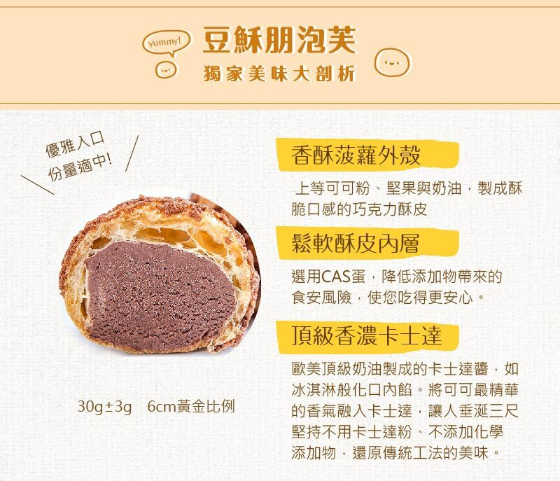 松軟酥皮内層選用CAS蛋,降低添加物帶來的食安風險,使您吃得更安心。