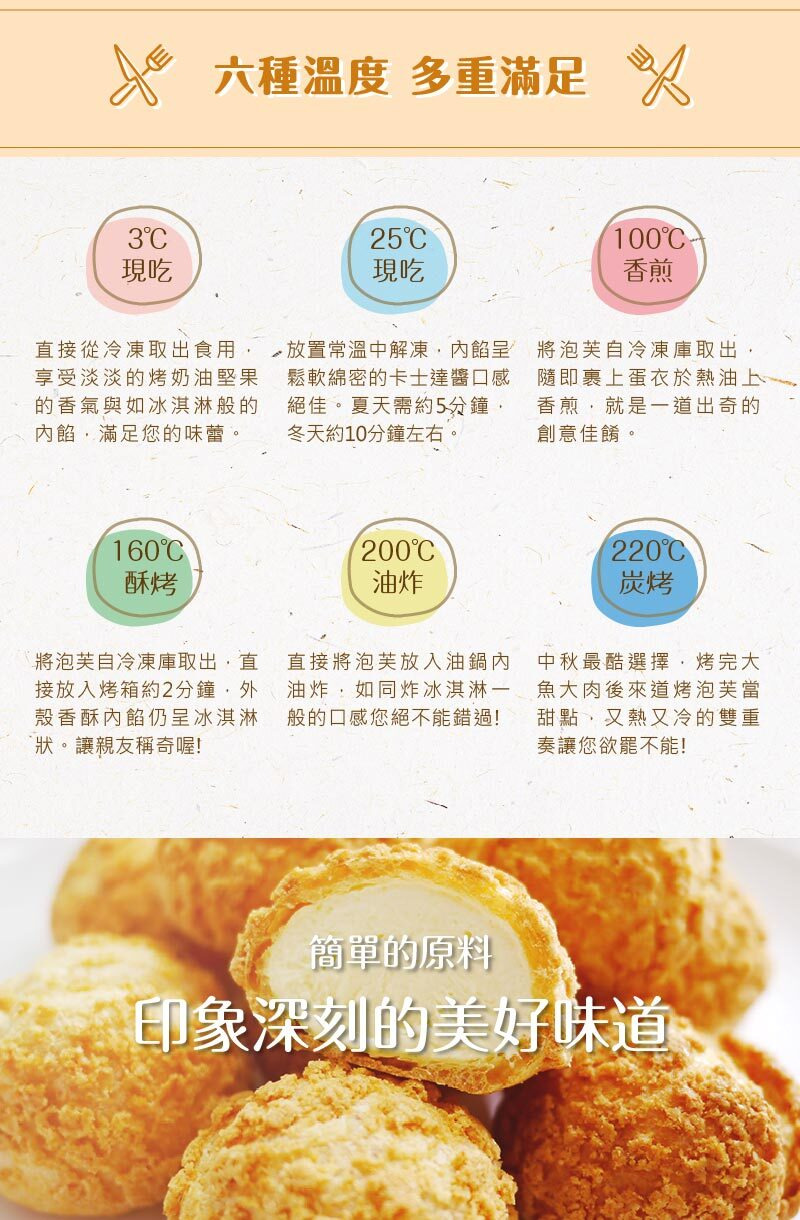及濃郁的口感,細緻的味道引出卡士達醬與外殼搭配的絕佳風味!