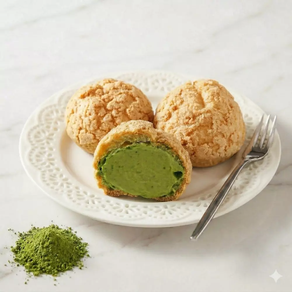 在享受甘醇茶香與滑順奶香交織的奢華口感時,您完全不需擔心負擔!抹茶泡芙是豆穌朋所有泡芙口味中「熱量最低」的絕對冠軍,讓您輕鬆品味,療癒身心零罪惡感。