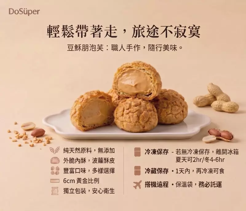 花生泡芙的靈魂,來自我們對頂級食材與極致安全的堅持。我們將本土花生的濃郁醇香,完美封存於酥脆的波羅外殼中,獻上讓無數老饕感動回購的經典美味。
