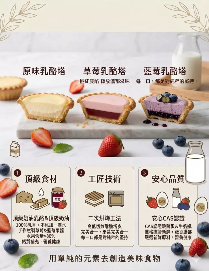 全台首創,水果乳酪塔,塔皮、乳酪、藍莓、草莓,味蕾三重奏