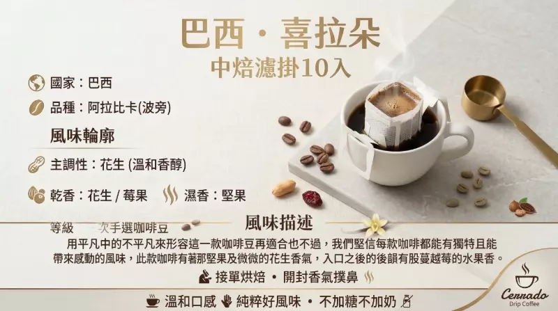 Cerrado佔巴西國土面積的21%(延伸到巴拉圭和玻利維亞)Cerrado是熱帶稀樹草原生態是巴西中心的高原。 Cerrado的主要棲息地類型包括:森林熱帶稀樹草原,樹木繁茂的熱帶稀樹草原,公園熱帶稀樹草原和草草原。還包括薩凡納濕地和畫廊森林。 而咖啡生長在低海拔的地方,品嘗時有明顯的核果風味優雅,用的是水洗處理方式,它的香味口味適中。