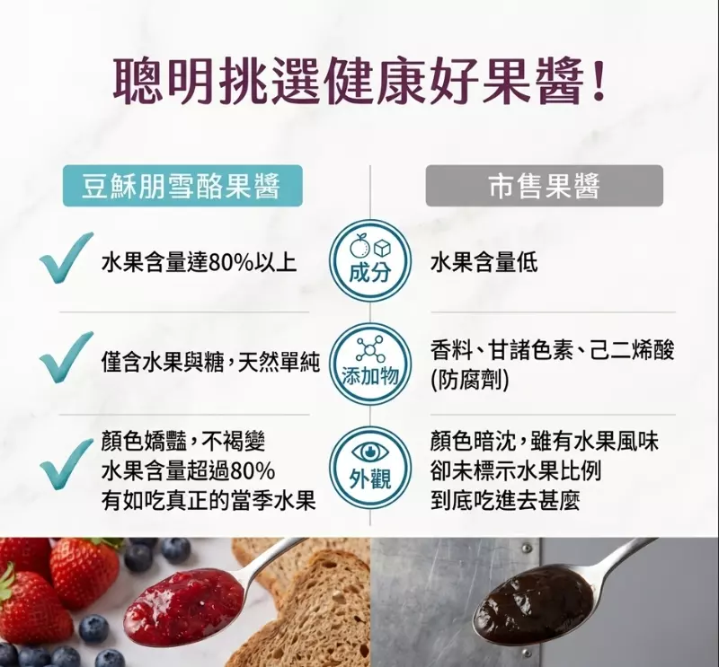 拒絕劣質色素果醬,選擇有天然水果籽的豆穌朋果醬最聰明